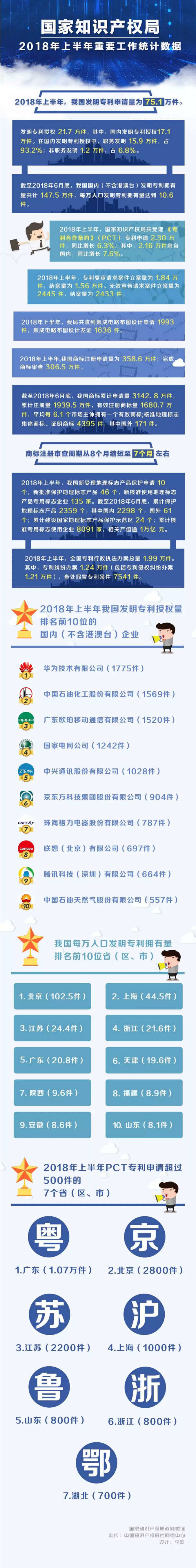国家知识产权局2018年上半年重要工作统计数据